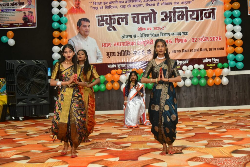 जनपद मऊ में शैक्षिक सत्र 2026–27 के अंतर्गत “स्कूल चलो अभियान” का भव्य शुभारम्भ नगर पालिका कम्युनिटी हॉल में प्रदेश के नगर विकास एवं ऊर्जा मंत्री श्री ए. के. शर्मा द्वारा दीप प्रज्ज्वलन एवं हरी झंडी दिखा कर किया गया। इस अवसर पर जनप्रतिनिधि, विभिन्न विभागों के अधिकारी, शिक्षक, अभिभावक एवं बड़ी संख्या में छात्र-छात्राएं उपस्थित रहे।