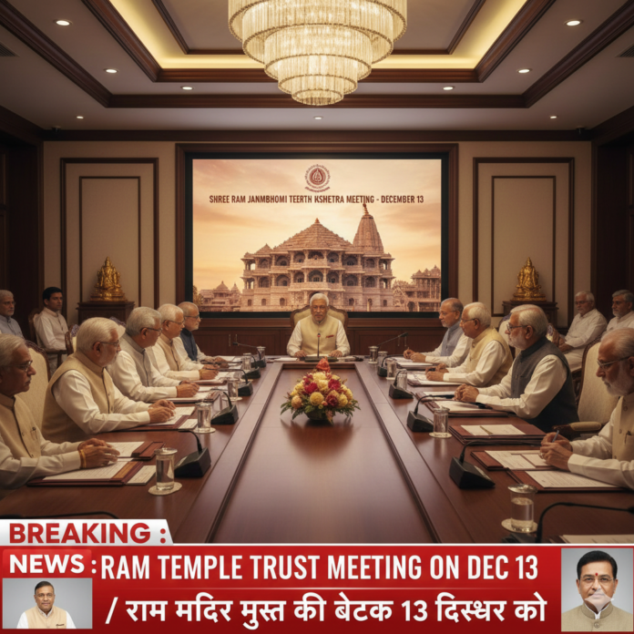 Ayodhya News: राम मंदिर ट्रस्ट के सदस्यों की 13 दिसंबर को होगी बैठक ।
