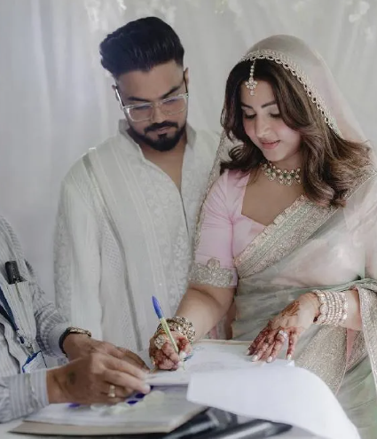 शादी के दौरान हिना काफी शादगी लुक में नजर आई और रॉकी ट्रेडिशनल आउटफिट में हैडसम लगे। ये समय हिना के लिए काफी चैलेंजिंग है क्योंकि हिना खान ब्रेस्ट कैंसर से जूझ रही हैं।