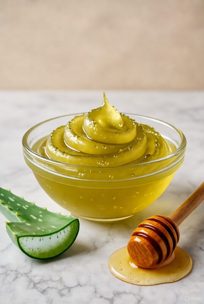 यह दोनों ही चीजें त्वचा के लिए अच्छी मानी गई है क्योंकि शहद में एंटीबैक्टीरियल और एंटी इन्फ्लेमेटरी प्रॉपर्टीज होती है जो स्किन को ग्लोइंग, बेदाग, मुलायम और टाइट रखने में मदद करता है साथ ही एलोवेरा पिंपल , और स्किन इरीटेशन से बचाता है। एलोवेरा में कॉलेजन और इलास्टिन फाइबर्स होते है जो हमारी त्वच को एकॉस्टिक और कम झुरियां वाली बनता है ।