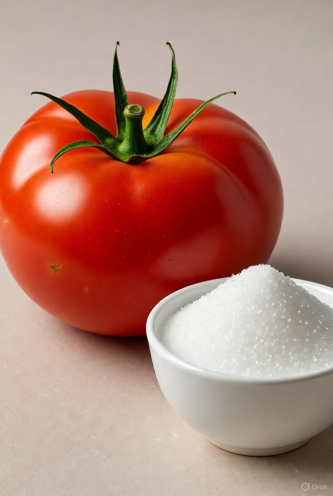 यह एक बेहतरीन एक्सफोलिटर की तरह इस्तमाल में लिया जाता है। टमाटर में लाइकोपिन और एंटीऑक्सिडेंट्स मौजूद होते है जो टैनिंग और सबर्न को कम करने में मदद करते है और वही चीनी डेड स्किन को हटाने में मदद करती है।