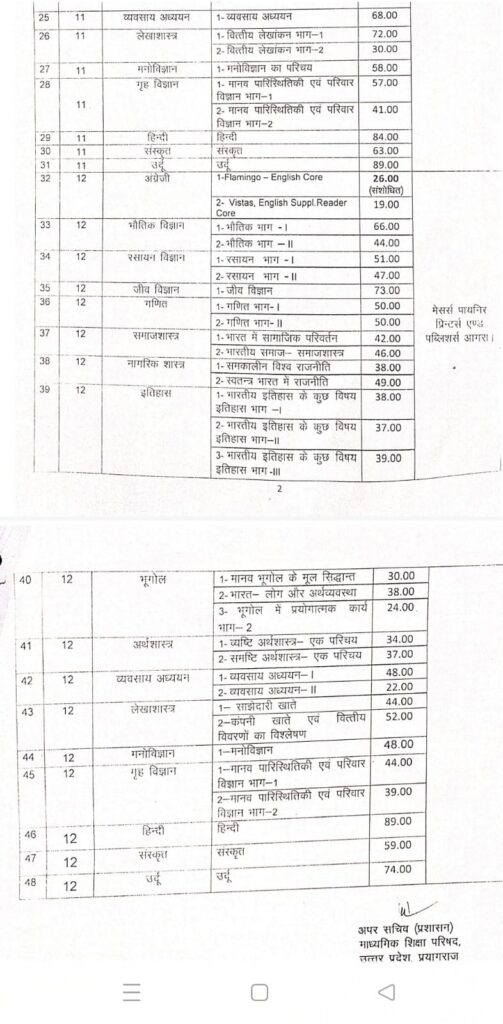 सख्त निर्देश कक्षा 9-10 के लिए अंग्रेजी, गणित, विज्ञान की किताबें अनिवार्य कक्षा 11-12 के 36 विषयों की अधिकृत पुस्तकें लागू एनसीईआरटी की 70 किताबें पूरे प्रदेश में प्रचलन में लाई गईं हिन्दी, संस्कृत और उर्दू की 12 चयनित पुस्तकें भी शामिल सभी स्कूलों में पुस्तक जागरूकता शिविर होंगे आयोजित छात्रों को सस्ती दरों पर उपलब्ध कराई जाएंगी किताबें राजकीय, सहायता प्राप्त और निजी स्कूलों पर लागू आदेश किताबों के मुद्रण व वितरण के लिए 3 एजेंसियां अधिकृत जिला व मंडल स्तर के अधिकारियों को सख्त निगरानी के निर्देश।