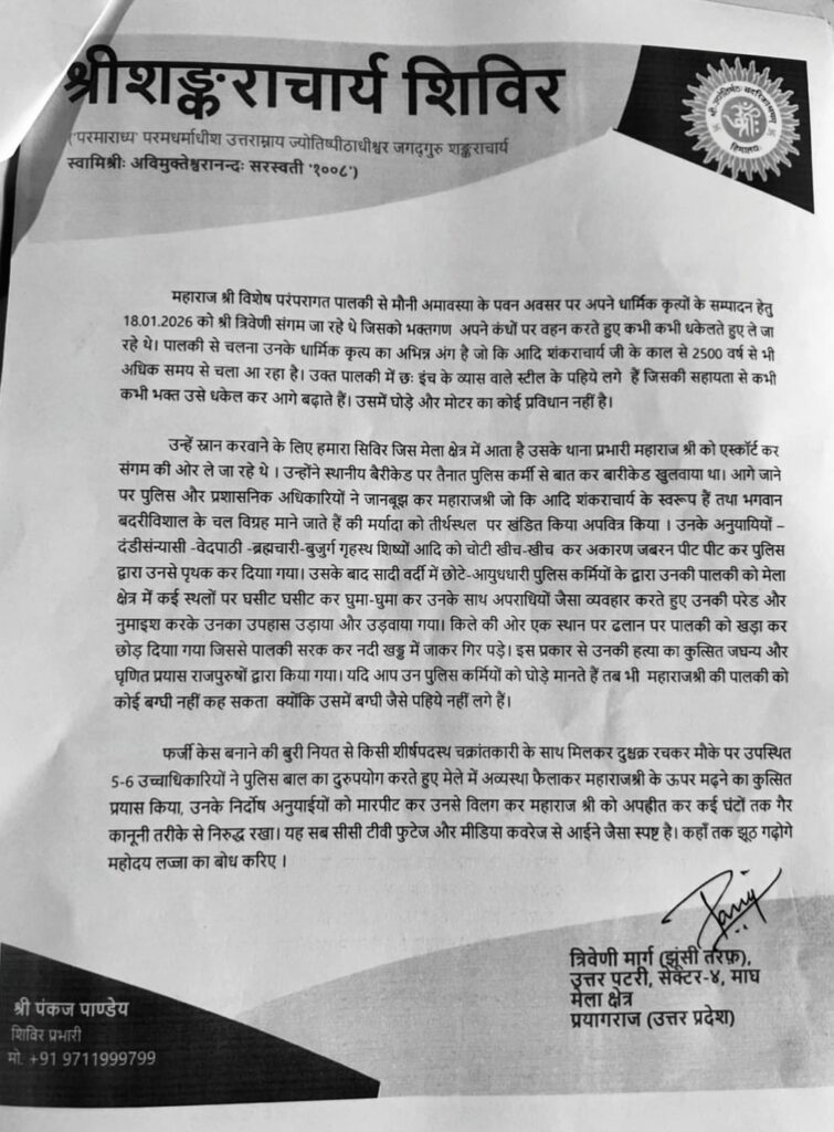 बैक डेट में नोटिस भेजने का आरोप, मेला प्राधिकरण पर सवाल, स्वामी अविमुक्तेश्वरानंद पर कार्रवाई की तैयारी।