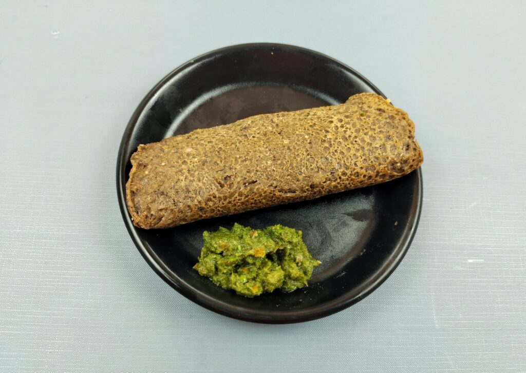 अब एक नॉन स्टीक पैन में थोड़ा सा ऑयल डालकर चिल्ले के घोल को पैन में डालकर फैला ले , फिर उसे दोनों तरफ से सेक कर, गरमा-गरम दही के साथ सर्व करे।