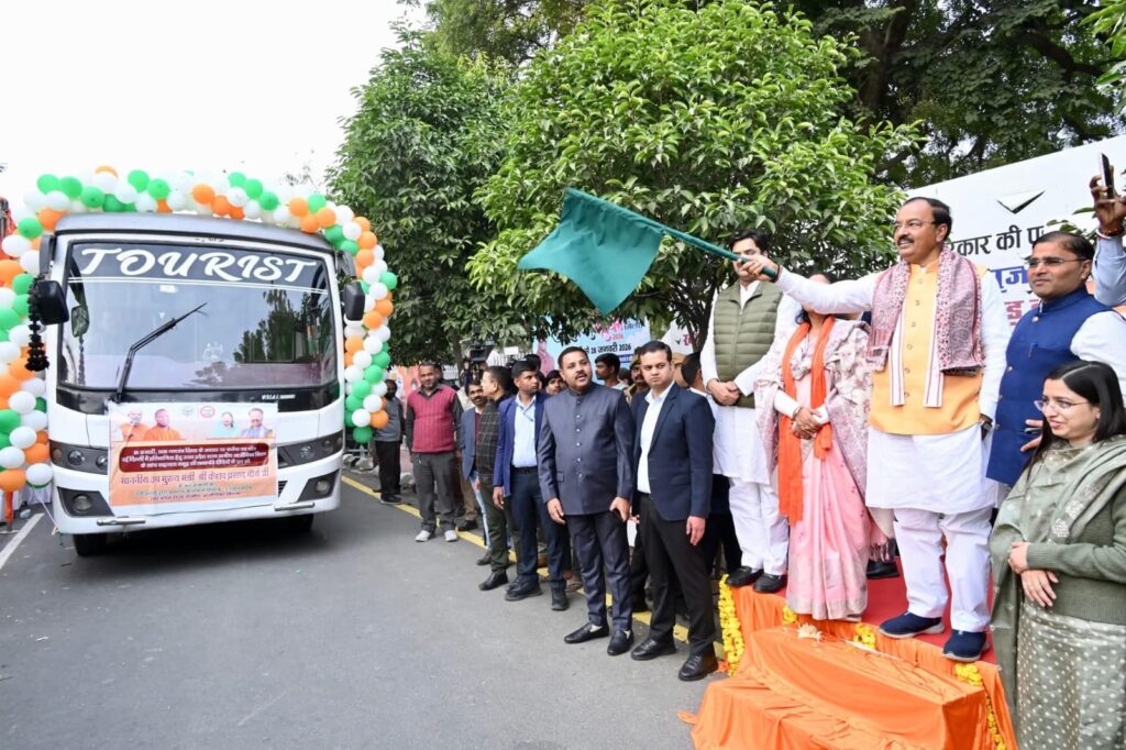 केशव प्रसाद मौर्य ने दिल्ली के लिए हरी झंडी दिखाकर किया प्रस्थान
