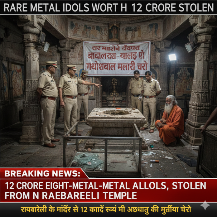 UP News: रायबरेली के रामजानकी मंदिर से चोरों ने अष्टधातु की मूर्तियां चुरा ली हैं। बताया जा रहा है कि मूर्तियों की कीमत करोड़ों रुपये है। शनिवार रात को रायबरेली के डलमऊ के रामपुर बरारा गांव में रामजानकी मंदिर से चोरों ने लगभग 12 करोड़ रुपये की राम, लक्ष्मण और सीता की अष्टधातु की मूर्तियां चुरा लीं। मंदिर से मूर्तियों की चोरी से भक्तों में गुस्सा है। भक्तों का कहना है कि सदियों पुराने इस मंदिर में पहले कभी ऐसी घटना नहीं हुई थी। उनका मानना है कि यह घटना पुलिस की लापरवाही के कारण हुई है।