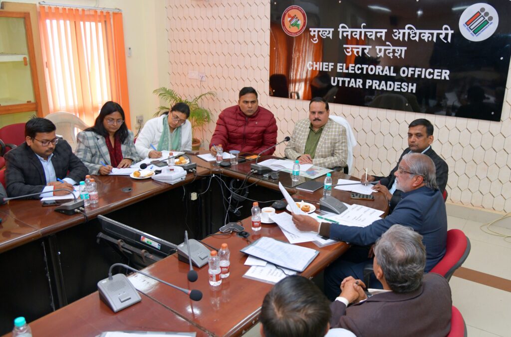 UP voter revision: उत्तर प्रदेश के मुख्य निर्वाचन अधिकारी श्री नवदीप रिणवा ने सभी मान्यता प्राप्त राजनैतिक दलों के प्रतिनिधियों के साथ 05वीं बार राज्य स्तरीय बैठक कर विशेष प्रगाढ़ पुनरीक्षण (SIR) के दौरान दावे व आपत्तियों का निस्तारण एवं नोटिस जारी किये जाने व इस पर हो रही सुनवाई की प्रक्रिया की जानकारी दी।
