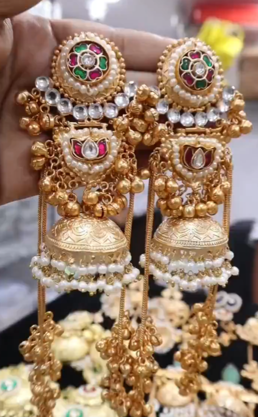 इन सुनहरे और रंगीन झुमकों में शानदार दिखने के लिए आप इन झुमकों को पहन सकतें हैं।