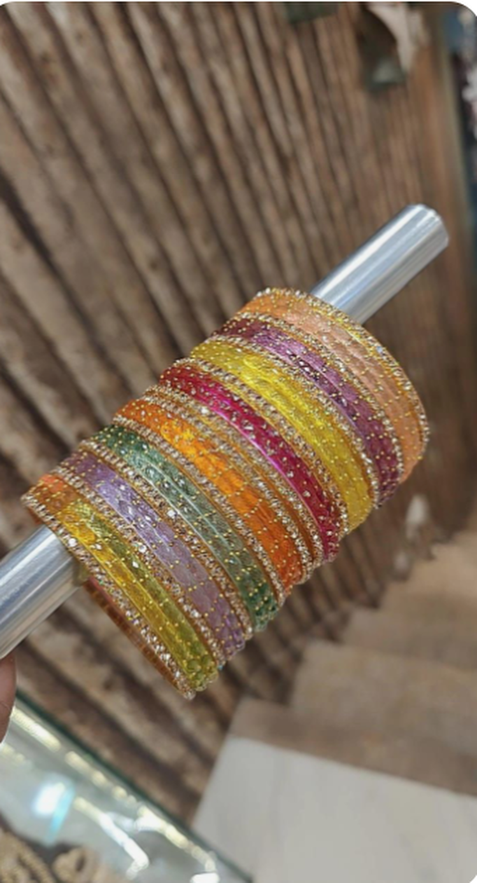 आप ये मिरर रेनड्रॉप चूड़ियां भी ट्राई कर सकती हैं, जो बहुत खूबसूरत लगती हैं।